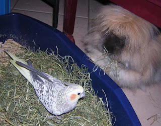 La vita in comune iniziò a meraviglia e continuò tale, salvo l’affrontare soli piccoli problemi o grandi problemi (meglio in casa o fuori? quali verdure mangiano? ecc..) perché quell’asino di negoziante che ce li aveva venduti non ne sapeva nulla!!! Quindi imparammo tutto da soli, scoprendo ogni giorno come era possibile convivere al meglio. Cercavamo di farli uscire dalla gabbia per dar loro un po’ di libertà e la cosa ci ripagò anche se commettemmo una serie di errori: Claudio ha sul naso il segno di una evidente beccata (ma questo lo sapete solo voi, per tutti gli altri è la traccia di un incidente domestico!) perché si era avvicinato troppo a Camillo per fargli le coccole, e lui, ancora un po’ selvatico, si era spaventato! In giro trovavamo spesso dei ricordini... i cassettoni in legno delle tapparelle venivano regolarmente rosicchiati ed era difficile farli rientrare: bisognava aspettare che avessero fame, allora rientravano a mangiare e noi come fulmini a rinchiuderli. Questo lo capirono presto e, siccome sono piccoli, ma non scemi, rientravano uno alla volta a mangiare e l’altro aspettava fuori guardandoci: troppo simpatici! Si lasciavano prendere solo a fine serata, quando erano stanchissimi!